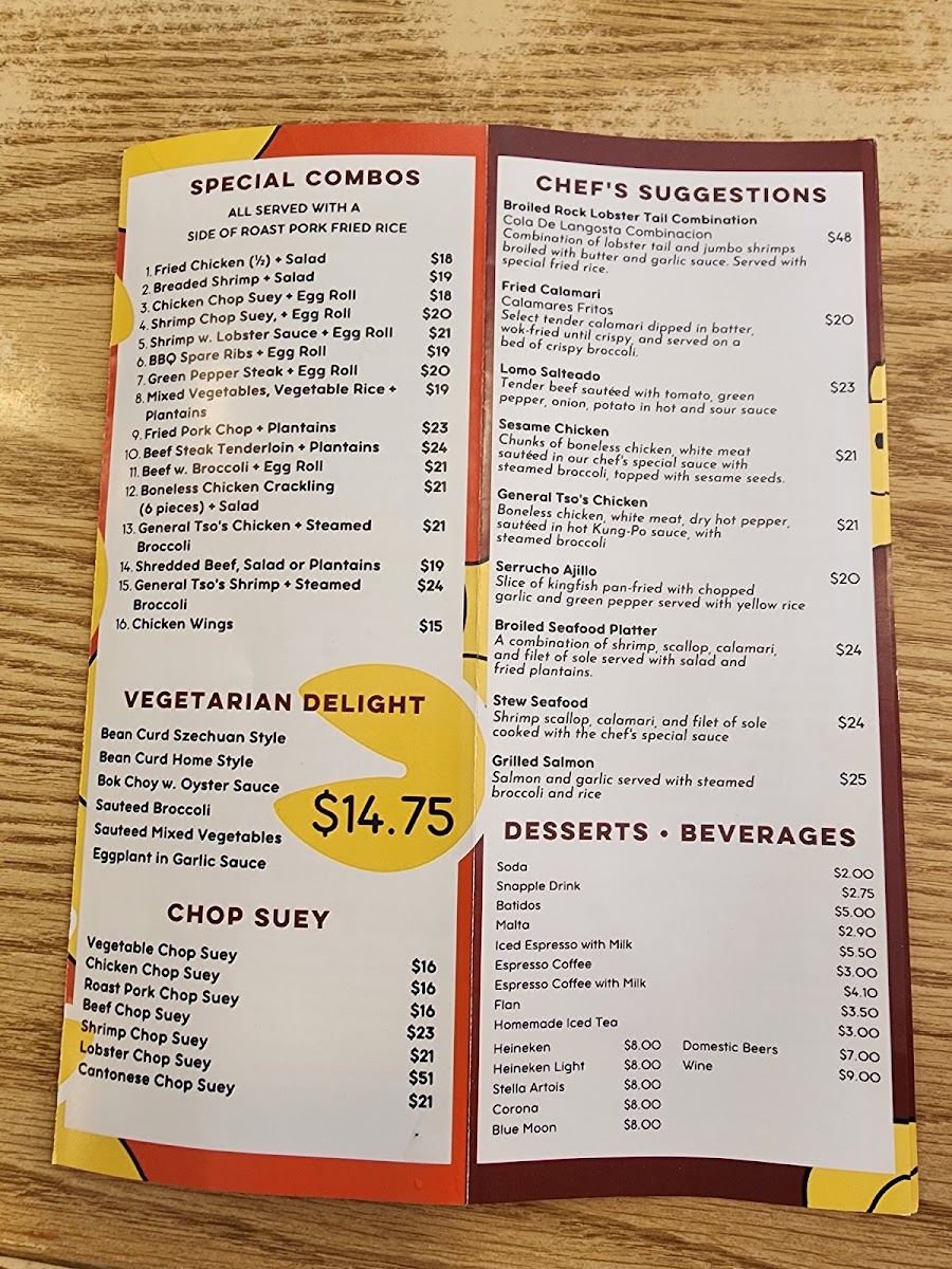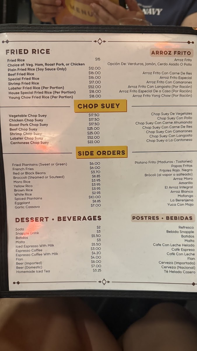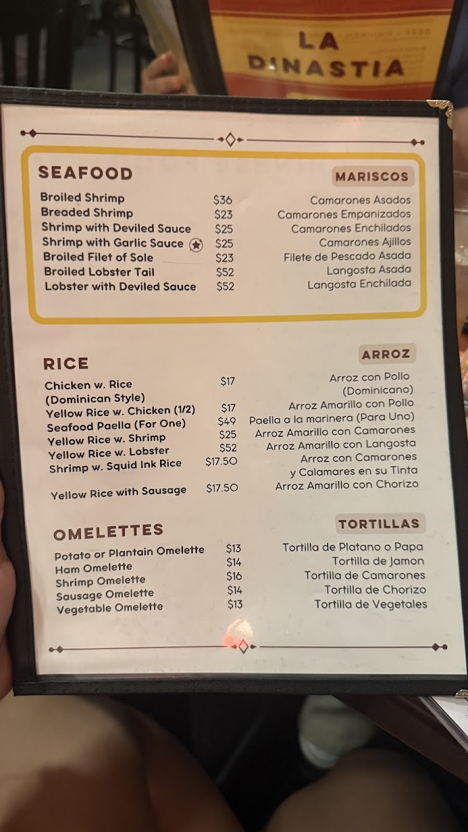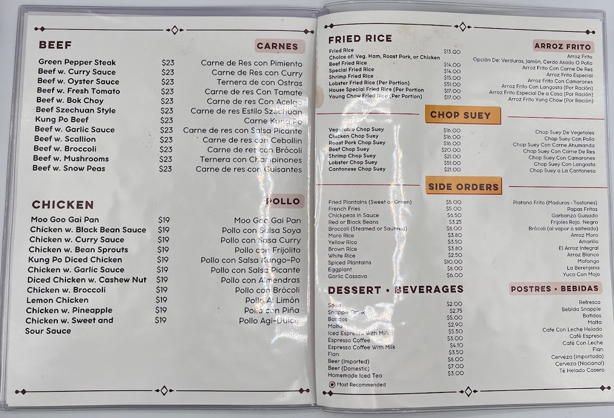 For those who appreciate heartier dishes, La Dinastia offers a range of Latin specialties. The Chopped Beef (Picadillo) and the Broiled Chicken (Pollo Asado), each priced at $19.00, are favored choices among diners. Reviews from satisfied customers highlight the deliciousness of comfort food options, notably the tender Beef and Tomatoes dish and seafood fried rice, which is described as both flavorful and fulfilling.